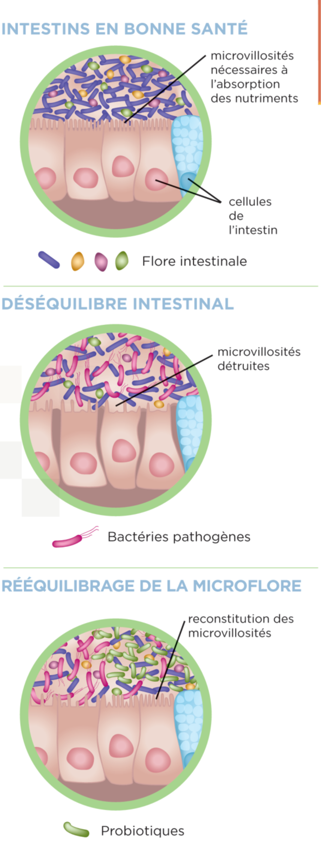 Probiotiques et prébiotiques jouent un rôle important dans l'amélioration du confort intestinal en cas de déséquilibre de la flore intestinale.